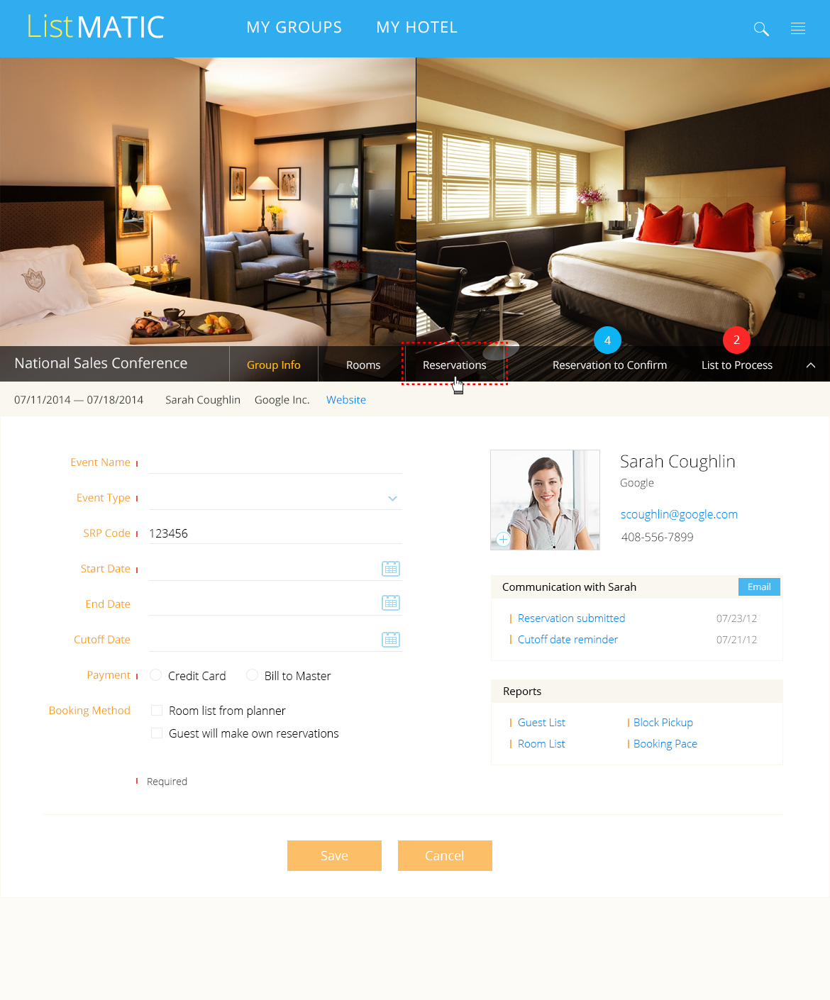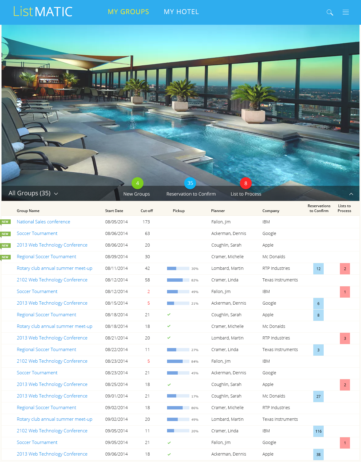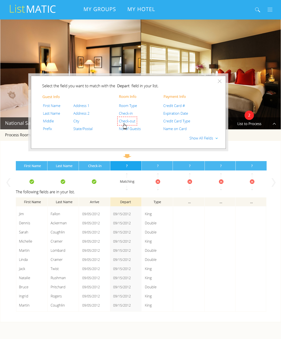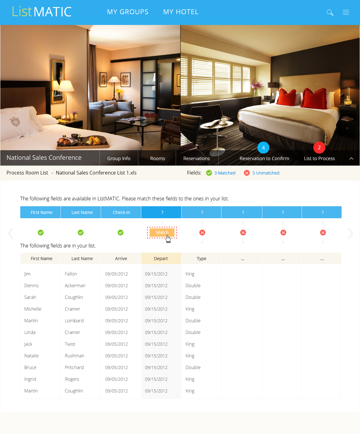 In 2012, I designed a web-based platform that enabled corporations and event planners to efficiently book and manage large blocks of hotel rooms for corporate events. Streamlined workflows allowed planners to upload attendee lists, automate room assignments, and monitor inventory in real time, reducing manual effort and booking errors while integrating seamlessly with partner hotels.