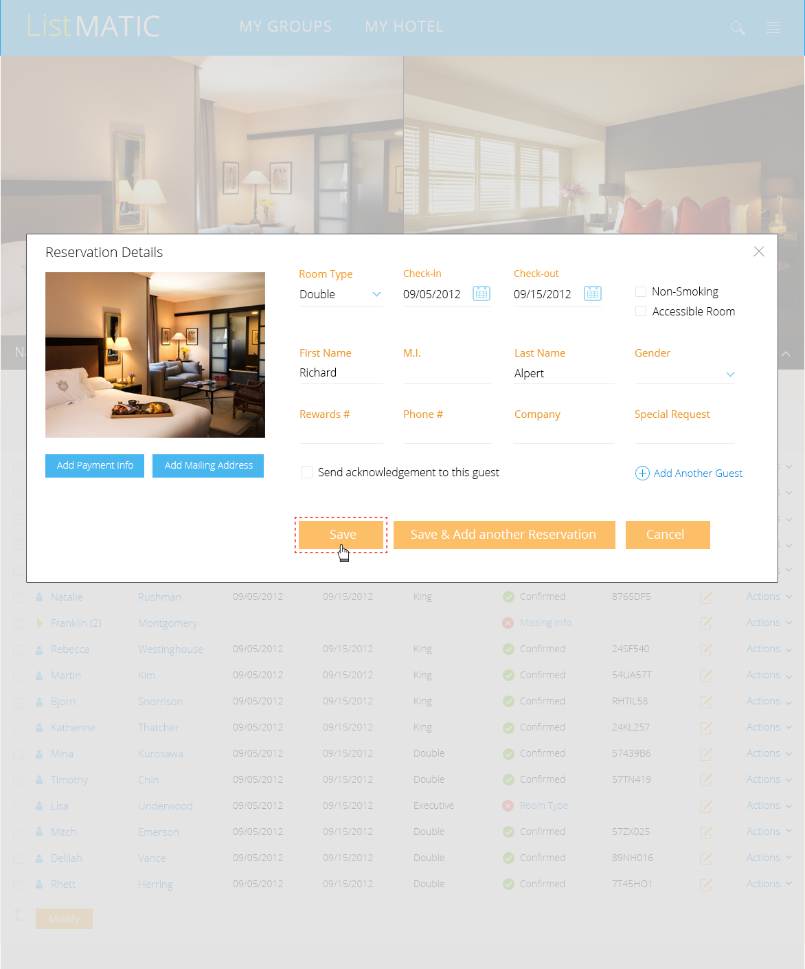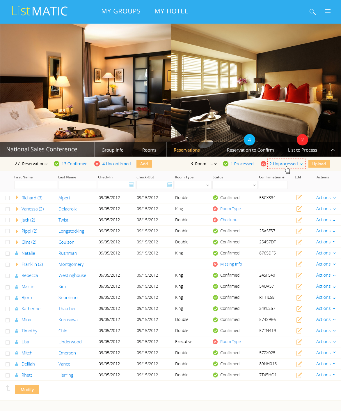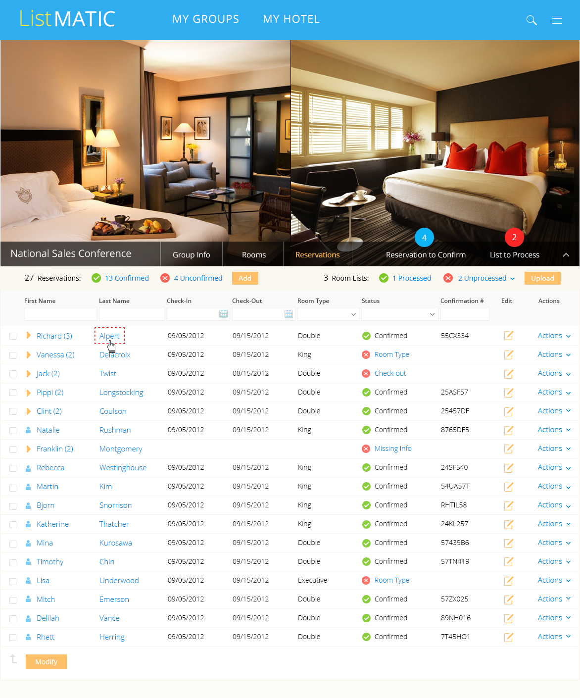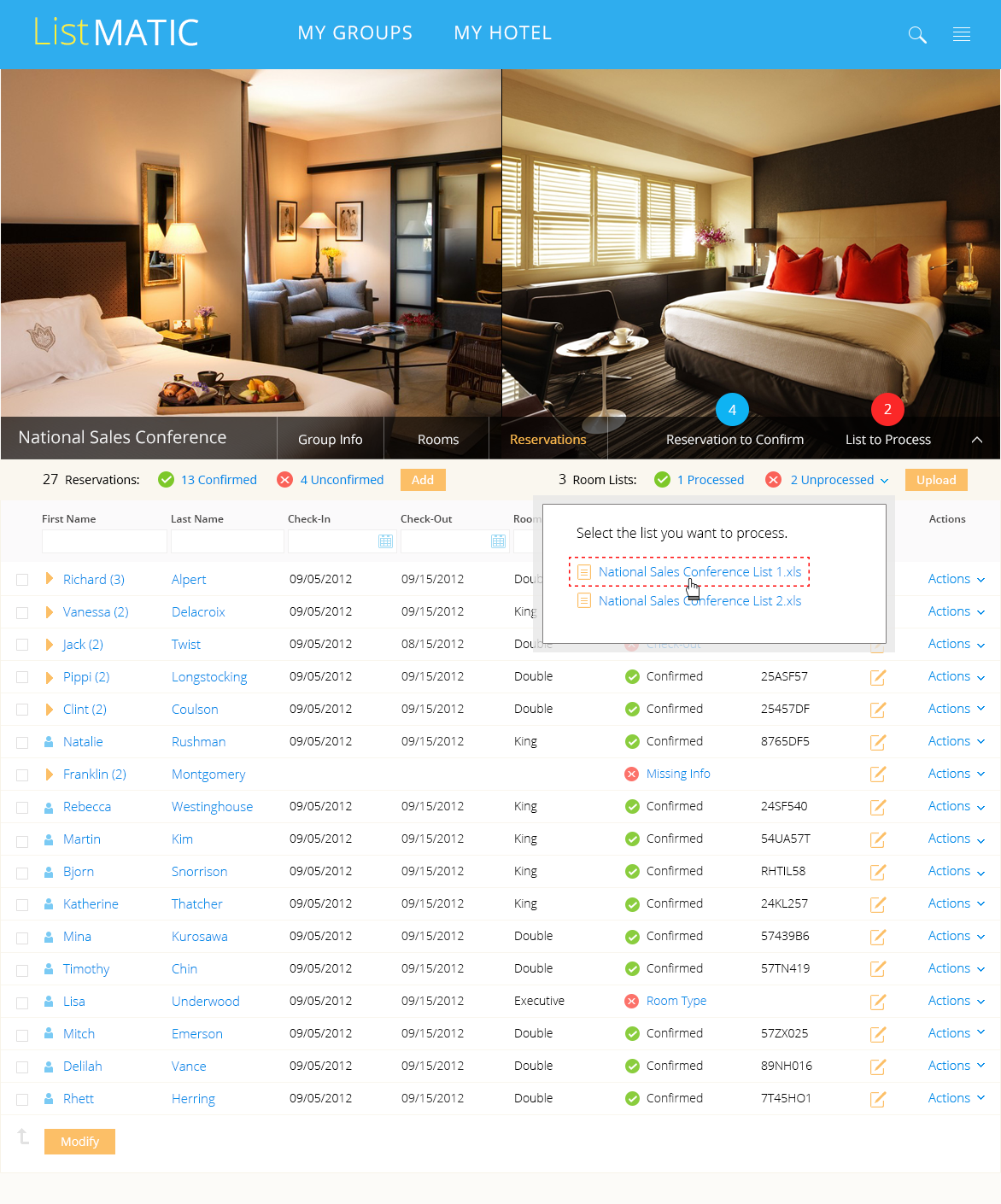 In 2012, I designed a web-based platform that enabled corporations and event planners to efficiently book and manage large blocks of hotel rooms for corporate events. Streamlined workflows allowed planners to upload attendee lists, automate room assignments, and monitor inventory in real time, reducing manual effort and booking errors while integrating seamlessly with partner hotels.