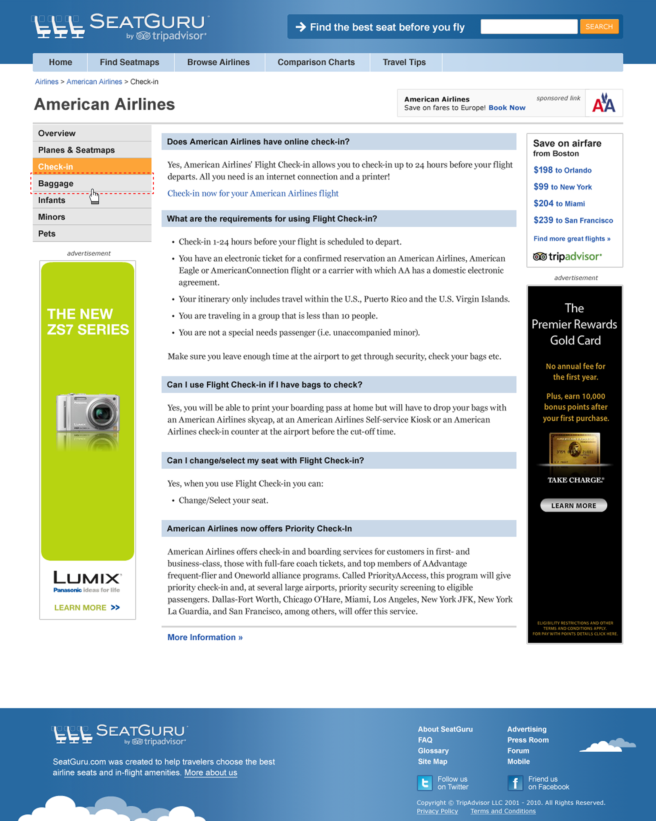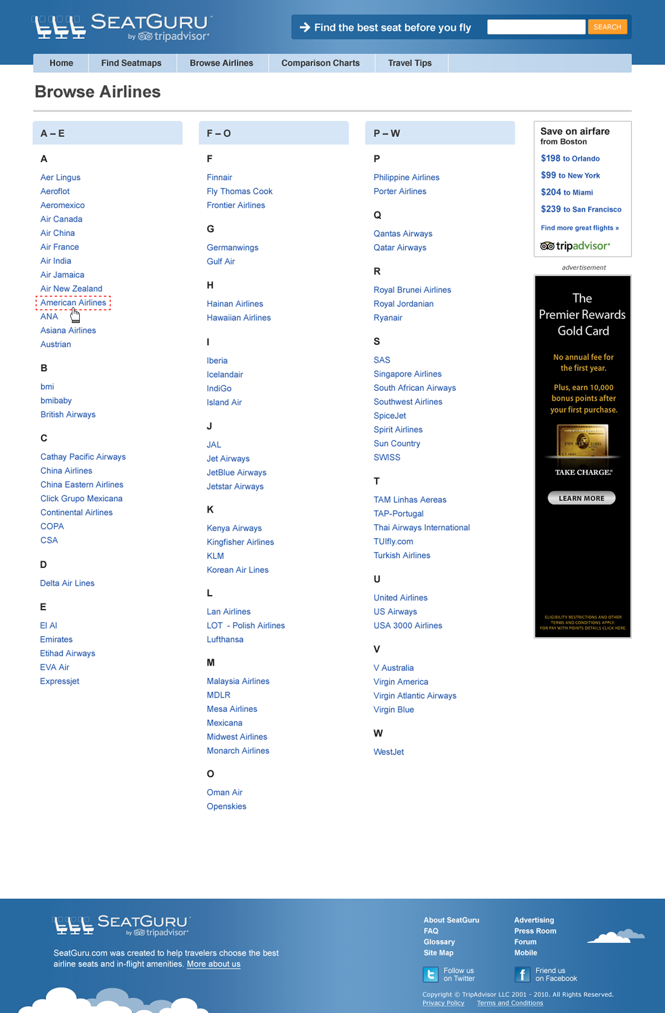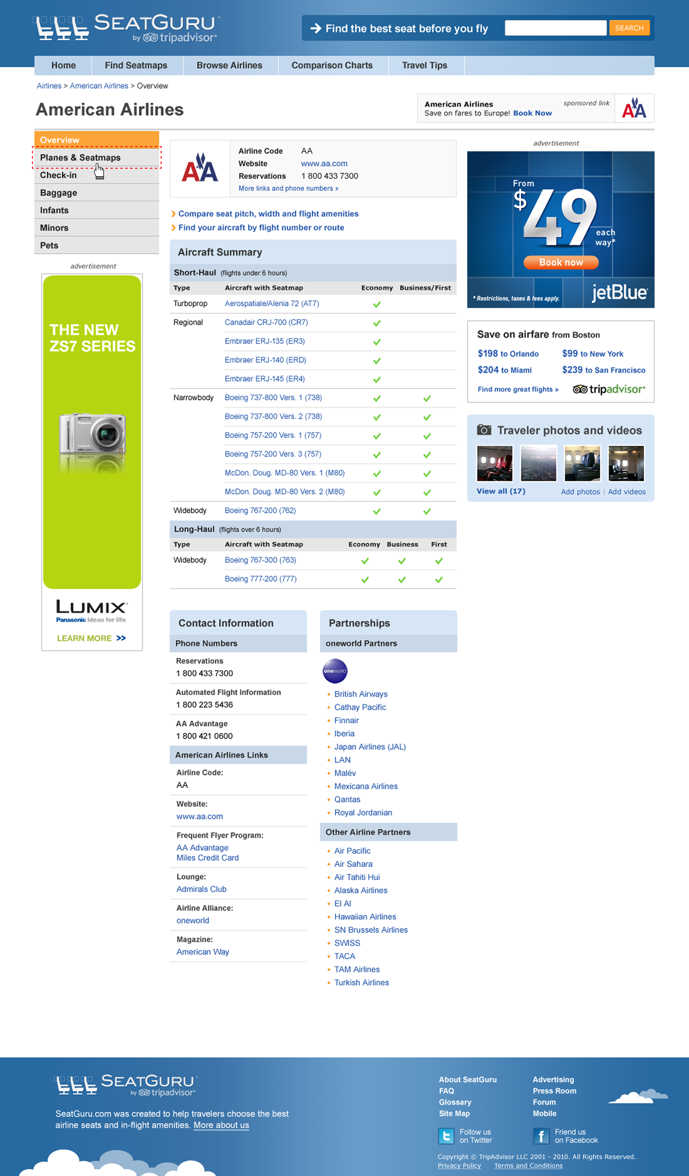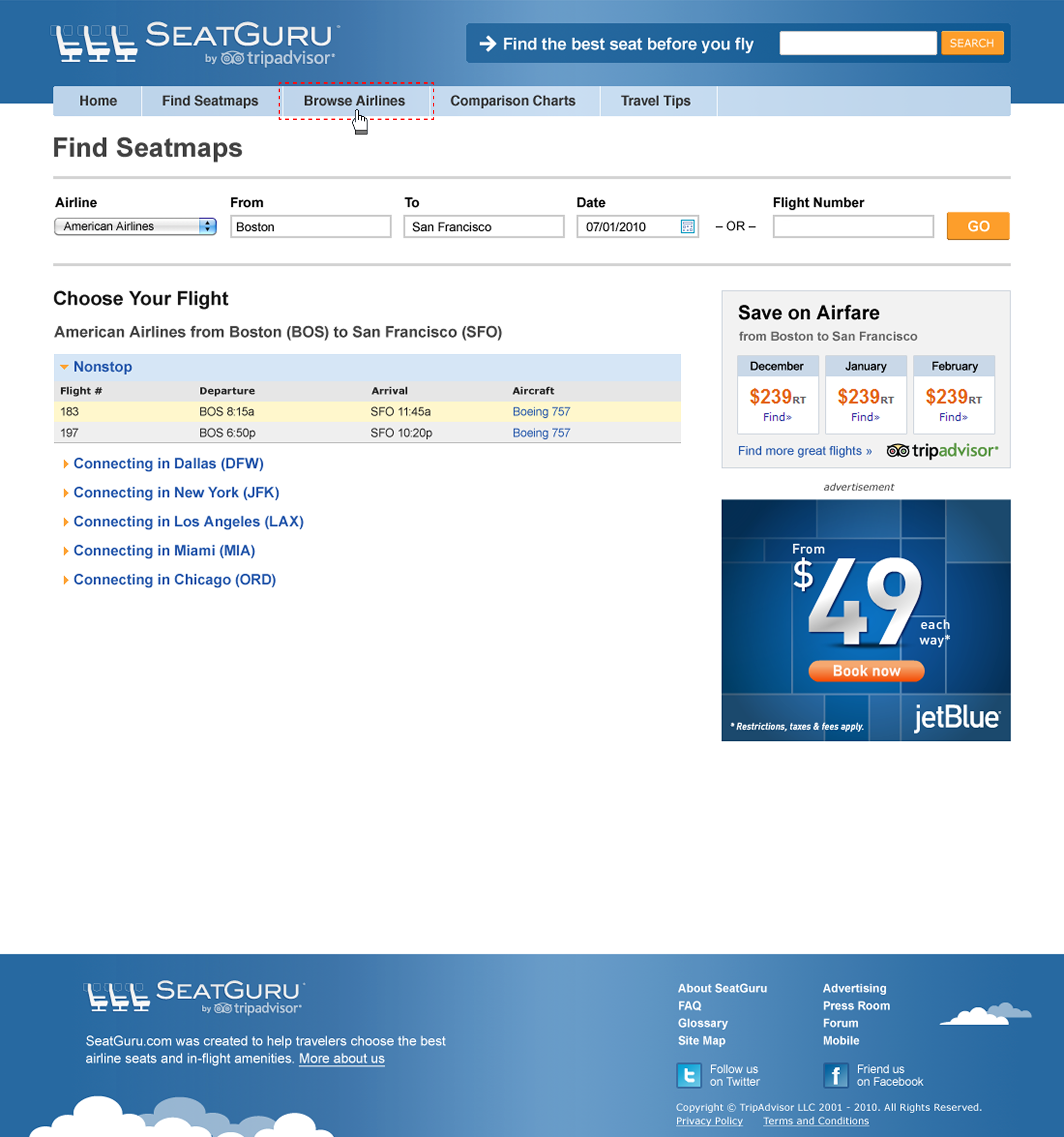 I collaborated with TripAdvisor’s design team to create SeatGuru, a website that helps air travelers choose the best seats on flights. The site featured: